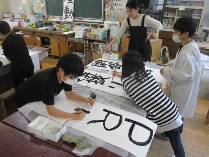 音楽係は、校歌やファンファーレの練習に取り組んでいます。準備・整理運動係は、リズムに乗った運動を全校のお手本になるように取り組んでいます。装飾係は、掲示するためのプログラム作りに取り組んでいます。高学年のみんなが運動会を盛り上げよう、成功させようと進めてくれるのは、とても頼もしいです。