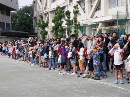 校庭には、児童・保護者の皆さんを含め、1000人以上の人たちとともにこの感動を味わうことができました。