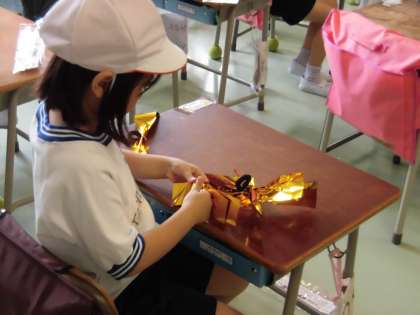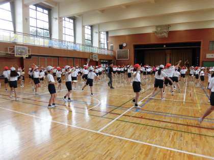 今日は運動会全体練習も行われ、土曜日には待ちに待った運動会を迎えようとしています。今日はあいにくの雨模様で、校庭での練習はできませんが、体育館での練習を行ったり、各教室でも並び方の練習をする様子も見られました。体育館では細かい複雑な足の動きを確認して練習を積み重ねていました。1年生の教室では、手に持って踊るポンポンを作っていました。ワクワクした気持ちが伝わってきます。