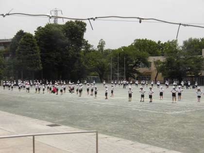 1年生の運動会練習でも、徒競走の並び順を確認したり、表現発表の入退場の仕方も練習しました。今日はとても暑い一日でしたが、校庭でも一生懸命に練習に励みました。熱中症予防のため、休憩をはさみ、水分補給をしっかりとして練習しました。入口に設置したミストシャワーも大活躍です。