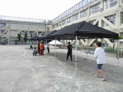 高学年の子どもたちの係活動の後は、教職員で準備を進めました。入退場門やテントを立て、ラインを正確に引き直します。放送機器(特に表現の音楽)の準備も念入りに行いました。教職員も「チーム明正」として、力を合わせ、子どもたちの思い出に残る運動会にしたいという思いがいっぱいです。どうぞよろしくお願いいたします。