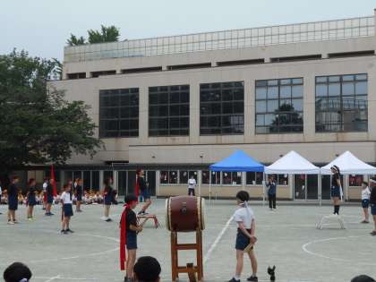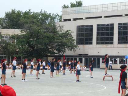 今日は運動会(児童鑑賞日)でした。校庭に全学年が集まり、各学年の表現発表と高学年リレーを鑑賞しました。開会式、そして応援団の応援合戦から始まりました。紅組も白組も団長を中心に、気合の入った応援、エールの交換が行われました。毎日練習した成果を発揮することができました。土曜日の本番もより力強い応援合戦が期待できそうです。
