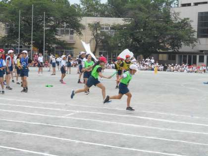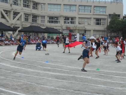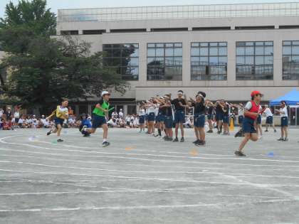 運動会(児童鑑賞日)の最後を締めくくった種目は、高学年によるリレーです。白熱した戦いとなり、選手ひとりひとりが緊張する表情の中にも、練習を繰り返してきた自信に満ち溢れ、スタートを切りました。バトンパスもとてもスムーズで、練習の成果を発揮することができ、最後までバトンを繋ぎ、走り切りました。応援する声も大きく、「赤、ガンバレー!」「白、ガンバレー!」と盛り上がりました。土曜日の保護者鑑賞会でも、最高のすばらしい戦いを見せてくれることでしょう。ご期待ください!