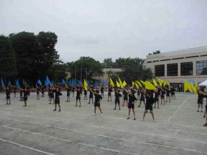 「最高学年としての見本」「自分たちで創る」「完成度の高さ」と6年生が「PRIDE」に込めた思いが強く感じられる演技です。フラッグを使った動きには、流れるような滑らかさが感じられます。集団での演技には力強さが感じられます。さすが6年生です。感動しました。