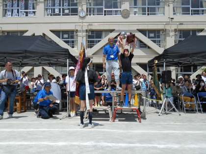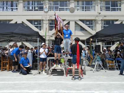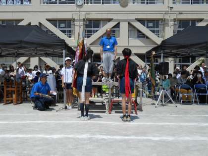 大きな拍手の中、白組は優勝旗、赤組は準優勝杯を校長先生から受け取りました!