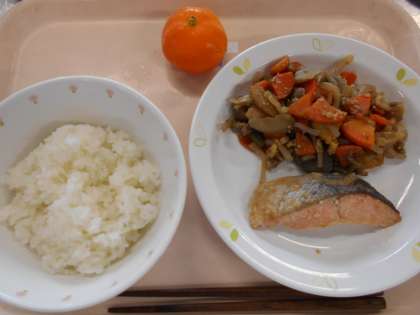 ごはん 鮭の香味焼き きんぴら煮 冷凍みかん 牛乳