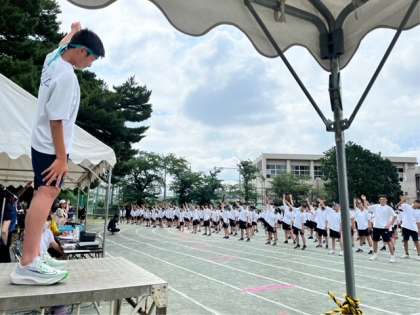 砧の学び舎の砧中学校で運動会が開かれています。生徒が中心になって運営しています。明正小を巣立った先輩たちも活躍しています。
