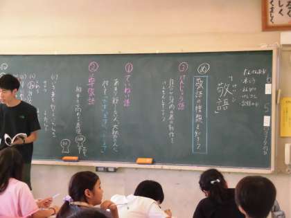 5年生の国語では「敬語の種類」について学習しています。敬語は相手を敬う気持ちを表す言い方で、〜です〜ますを使う「丁寧語」、相手を立てる時に使う「尊敬語」、自分がへりくだる時に使う「謙譲語」の3種類があることを学び、それぞれがどのように使うのか具体的に例を出しながら学習しました。日常生活でも、これらを使い分けることができるように、敬語を理解して、話す相手や場面に応じて適切な敬語を使うことができるように身につけていきたいものです。