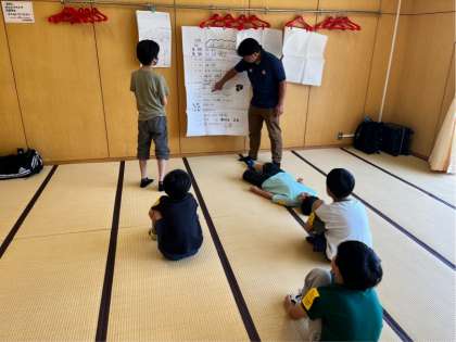 部屋で、これからの予定を確認しました。大石公園に出発しました