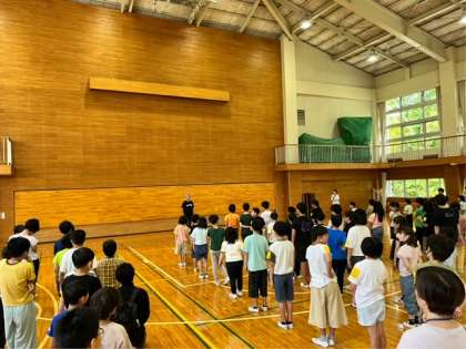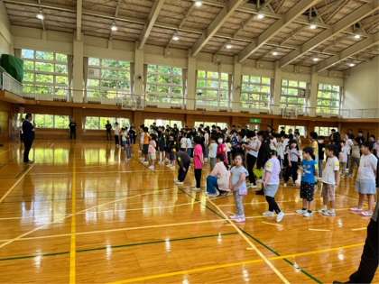 避難訓練の後、開室式を行いました。代表の校長先生から「楽しく」「安全に」「協力して」過ごしましょうとお話がありました。