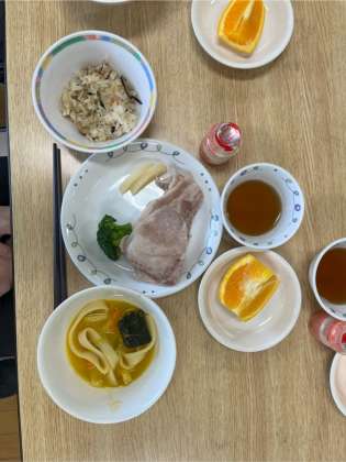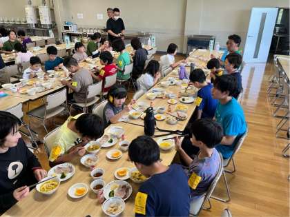 2日目の夕食です。ハイキング、こども会でたくさん身体を動かしたので、お腹が空きました。おかわりをしている子もいます。