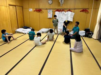 夜の会を行い今日の活動を振り返りました。検温をして布団に入りました。おやすみなさい。