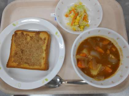 セサミトースト トマトシチュー コーンサラダ 牛乳