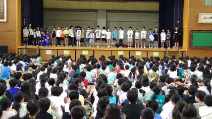 本日、委員会紹介集会がありました。委員長と副委員長がステージに立って、各委員会の仕事内容を紹介しました。全学年に「みんなで明正小学校をよりよい学校にしていこう」という気持ちをもたせることができました。また、委員会の紹介を聞いて委員会のメンバーは明正小のリーダーとしての自覚と責任をもっていることを感じました。