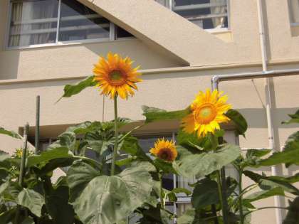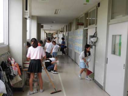 きれいな教室で、午後の学習もがんばることができました。今日は大変暑い一日となりましたが、水分補給や休憩をしつつ、活動を進めました。校庭には大きなヒマワリが咲いています。青空のもとで、子どもたちを見守ってくれているようです。