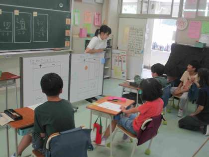 ひまわり学級の一つのグループでは、算数でくり下がりのあるひき算を学習しています。買い物をした時を思い出したり、筆算でやり方を考えたりして、正しい答えを導くことができました。授業をいろいろな教員が参観していましたが、いつも通りに元気に考えを発表することができました。