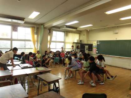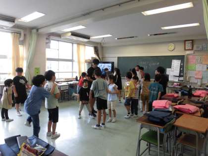 今日はたてわり班活動を行いました。あいにくのお天気のため、校庭は使用できず、教室や体育館での活動となりました。たてわり班のメンバーみんなの名前を覚え、仲をより深めるために、爆弾ゲーム、じゃんけん列車、なんでもバスケット、伝言ゲームなどのゲームをして交流を深めました。6年生がしっかりとスムーズに進行し、人気の曲を流したり、黒板にわかりやすく書くなど工夫がみられ、各教室から笑い声が絶えないとても楽しいたてわり班活動になりました。