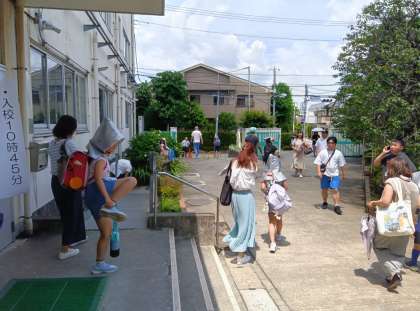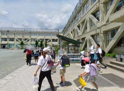 引き渡し避難訓練を行いました。大地震により広域災害となり第一次災害はおさまったけれども第二次災害が予想されるため、児童を保護者に引き渡すことを想定した訓練でした。