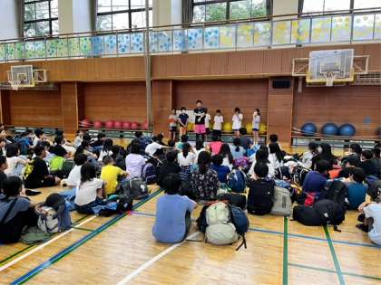 6年生の日光林間学園が始まりました。体育館で出発式を行いました。担当の皆さんがスローガン「最高到達点へ」と発表してくれました。日光の自然や歴史を感じるとともに、友達と楽しい思い出をたくさんつくってほしいと思います。早朝からたくさんの保護者の方々がお見送りをしてくださいました。ありがとうございます。