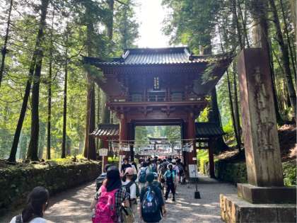 東照宮をじっくり見学できました。バスに乗り、宿舎を目指します。雨はまったく降りませんでした。よかったです。