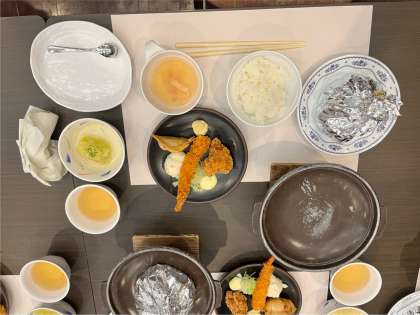 1日目の夕食です。熱々ハンバーグがおいしいです。たくさん活動したのでお腹が空いたそうです。