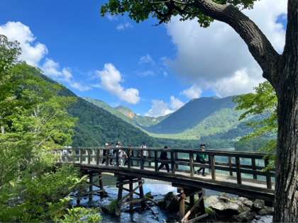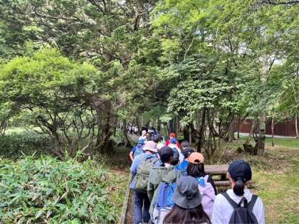 ハイキングが始まりました。湯の湖を半周して、湯滝へ向かいます。風が心地よいです。