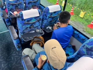 光徳牧場で楽しみにしていたアイスクリームを食べました。急に夕立ちが降ってきたので、バスの中でしたが、おいしくて楽しそうでした。