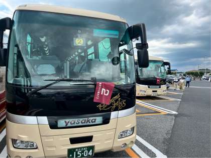 羽生サービスエリアに到着しました。バスの中は元気に盛り上がっています。運転手さんによれば、16時過ぎに学校に到着できそうです。