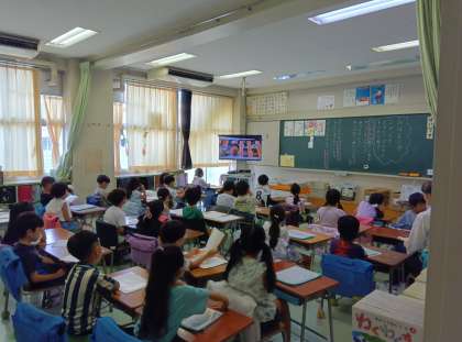 始業式では、校長先生からオリンピックのお話や防災のお話、2学期も安全に気を付けて頑張って欲しいというお話がありました。