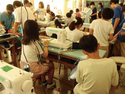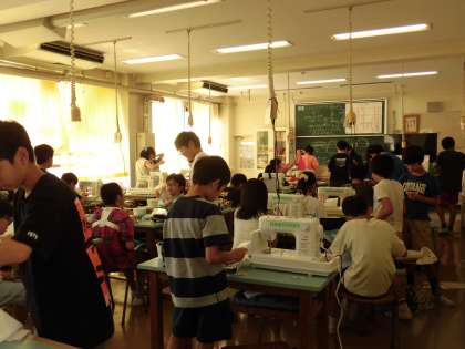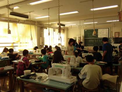 6年生の家庭科では、ミシンを使ってトートバックの制作をしています。布にしるしをつけて、布を裁ち、ミシンで両脇を縫っていきました。ミシンを使うのもとても手際よく進めている様子が見られました。手順をひとつひとつ確認しながら、自分なりの工夫も取り入れて、自分だけのトートバッグ作りを進めています。