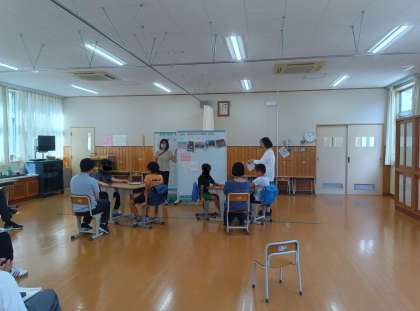 ペアで相談して「はい・いいえ」で答えられる質問をし、答えを絞っていきました。友達や先生と会話を楽しみながら、コミュニケーションの力を伸ばしていました。