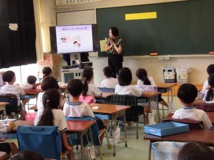1年生が2学期の発育測定を行いました。夏休みを元気に過ごし、身長も伸び、成長を感じることができました。保健指導では、保健室の先生から保健室の使い方についてお話を聞きました。保健室にはどんな先生がいるの?保健室の先生はどんなお仕事をしているの?ケガしたり、体調が悪くなって保健室に行く時の約束事をしっかりと学習しました。
