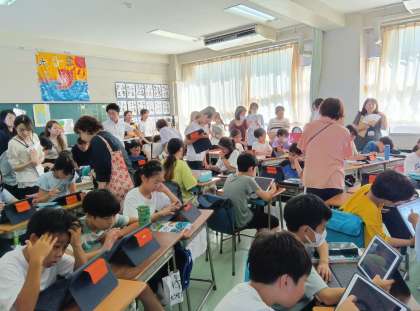 給食の写真や献立表から、水産物がたくさん使われていることや、日本各地の水産物をずっと昔から食べていることを知りました。しかし、給食での魚の残食が多いことから、魚の消費量が減っていることにも目を向けました。大勢の参観者の中、子どもたちは活発な意見を出し、頑張っていました。