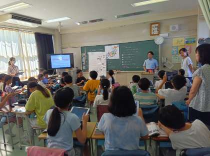 5年3組で研究授業を行いました。担任と学校栄養職員がタッグを組み、社会科と食育の観点から授業をしました。