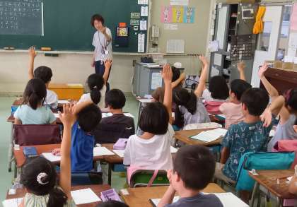 1年生算数の授業風景です。10より大きい数が「10のまとまりといくつ」という構成になっていることを学びました。多くの挙手があり、意欲的に学んでいることが分かりました。