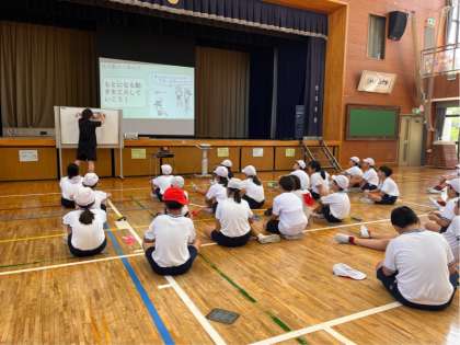 5年生は体育で「体の動きを高める運動」に取り組んでいます。今回は縄跳びを使っています。リズムや人数、姿勢などを工夫することで、より楽しく進めようとしています。友達と相談したり見合ったりすることも楽しく進めるためには大事なことですね。
