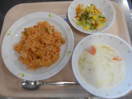 チキンライス 白菜のクリームスープ ひよこ豆入りフレンチサラダ