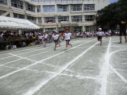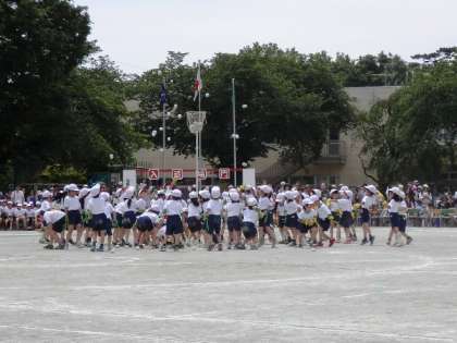 1年生は、「玉入れ」と「40メートル走」をやりました。最後まで力いっぱい頑張りました。