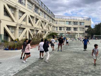 先週に比べて気温が下がり、過ごしやすくなりました。風が心地よく秋が感じられます。休み時間にはたくさんの子どもたちが体を動かしていました。