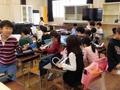 3年生は学習発表会に向けて、楽器を決めるためのオーディションが始まりました。リコーダーや鍵盤ハーモニカなど、やりたい、やってみたい楽器を一生懸命に練習して、オーディションにのぞんでいました。練習では、友達どうしで確認しあう様子や、ひとりで集中して何度も練習する様子も見られました。オーディションが終わり「すごいすごい緊張したー!」「指が震えたー!」という声も聞こえてきました。