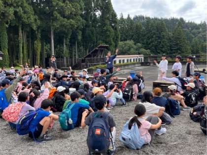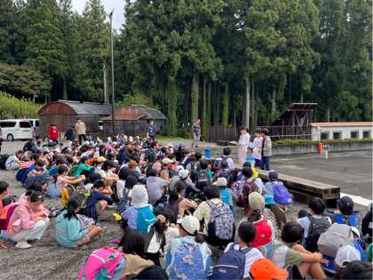 開室式を行いました。代表の子の言葉で、川場の自然を楽しもうと話してくれました。トンボがたくさん飛んでいます。