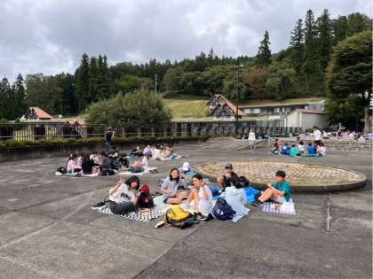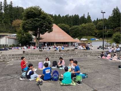 お弁当の時間になりました。行動班毎にシートを敷いて食べました。おいしそうなお弁当ばかりで、うらやましいです。早朝からご準備くださりありがとうございます。