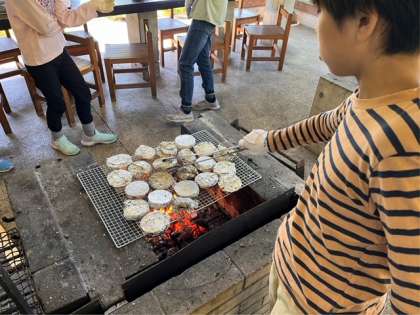 もうすぐできあがりです。焼いている手つきが職人さんのようです。