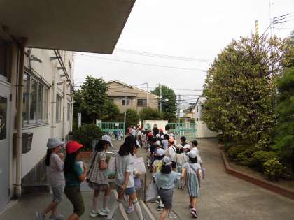 2年生が2回目のまちたんけんを行いました。野川コース、成城コースなど4つのコースに分かれて探検しました。まちたんけんしながら、お気に入りの場所や、見つけてうれしかった生き物や植物、気になるお店など、「自分のお気に入り」を見つけました。学校に帰ってきてから、発見して気に入った場所などをカードに記録しました。お天気も良く、楽しいまちたんけんになりました。お忙しい中、引率にご協力いただいた保護者の皆さま、ありがとうございました。