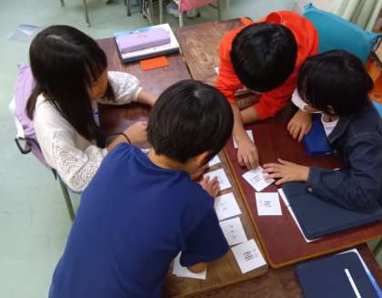 3年生の国語は、「秋のくらし」の学習をしています。先生は何を考えているでしょうゲームから本時の学習の見通しを持ちました。秋を感じる言葉をロイロノートで発信し、みんなで共有しました。コオロギや銀杏、どんぐりなど様々な秋をかんじる言葉が出てきました。みんなで共有した後に、秋を感じる言葉を使って俳句を作りました。
