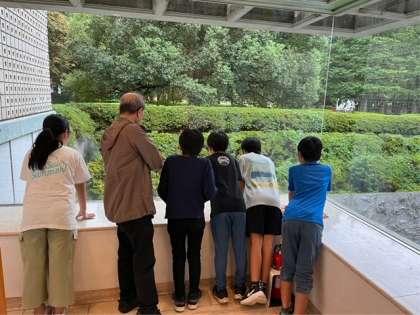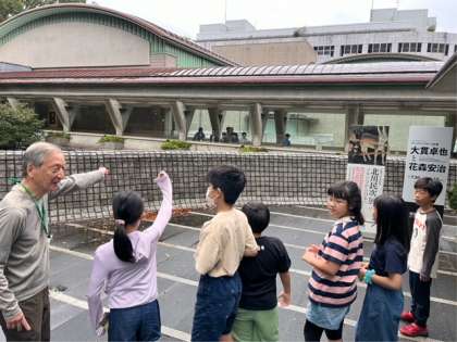 ガイドの方の説明を熱心に聞いています。