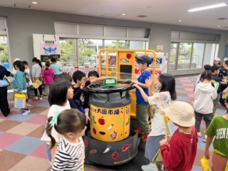 展示室では、ターレに乗ったり、展示物を見たりできました。