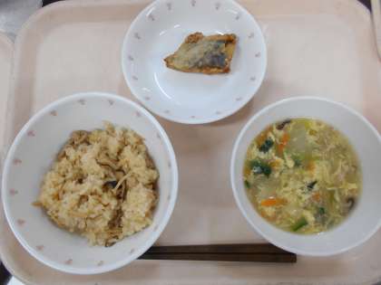 中華おこわ 鰆のたつたあげ 中華風たまごスープ 牛乳