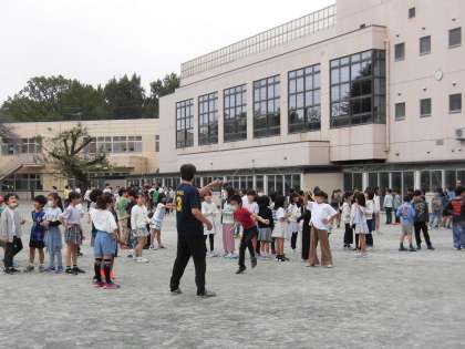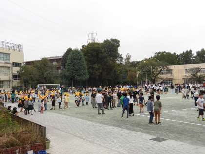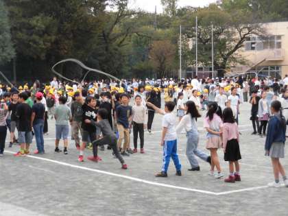今日の朝の時間は、長縄集会が開かれ、全クラスが校庭で長縄を行いました。運動委員会の合図で一斉に長縄が始まりました。クラス全員で跳んだ数を大きな声で数えたり、「ハイッ!ハイッ!ハイッ!」と掛け声をかけてリズムよく跳んでいました。体力づくり月間で毎日のように各クラスで練習を重ねてきた成果を存分に発揮できたようです。高学年は、縄を回す速さもミスの少なくさすがでした。