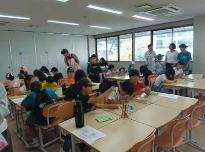 子どもたちは、それぞれの個性をいかしてすてきな缶バッジを作っていました。